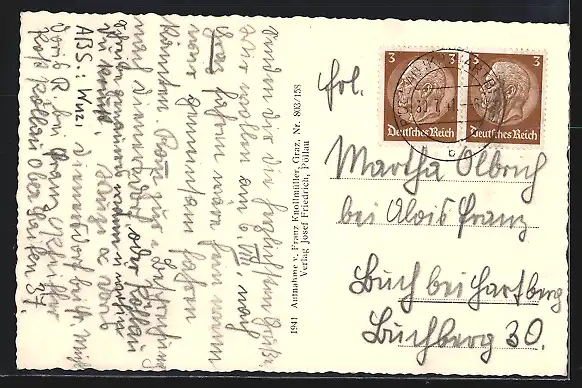 alte Ansichtskarte, gelaufen 1941, guter Zustand
