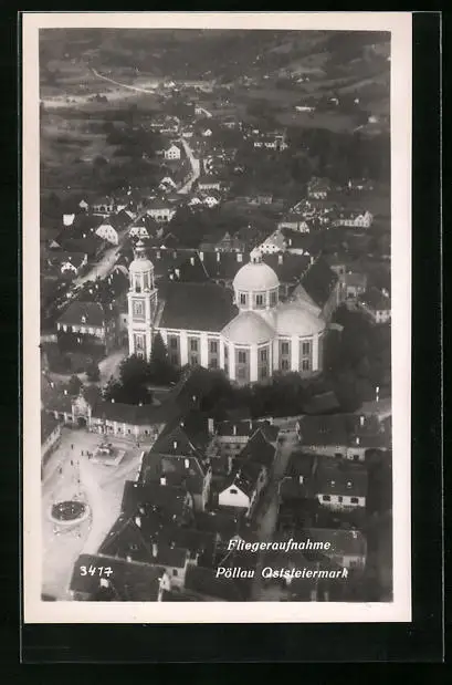 AK Pöllau, Fliegeraufnahme mit Fokus auf Kirche