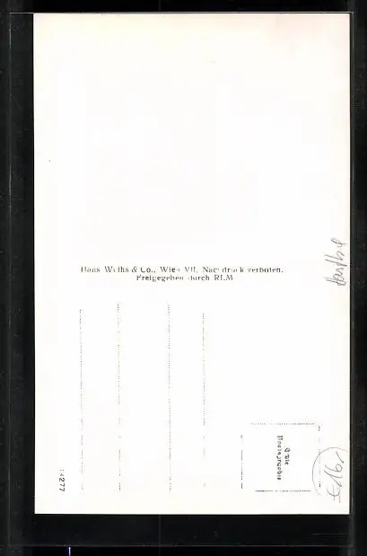 Personenbezogene Daten auf der Rückseite der Karte wurden durch blauen Textmarker unkenntlich gemacht. Die blauen Stellen sind auf die Vorderseite durchgeweicht und wirken sich negativ auf das Postkartenfoto aus