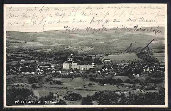 AK Pöllau, Gesamtansicht mit Rabenwald aus der Vogelschau