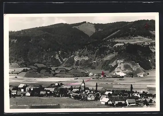 AK Pöls /Steiermark, Ortsansicht mit Berghintergrund