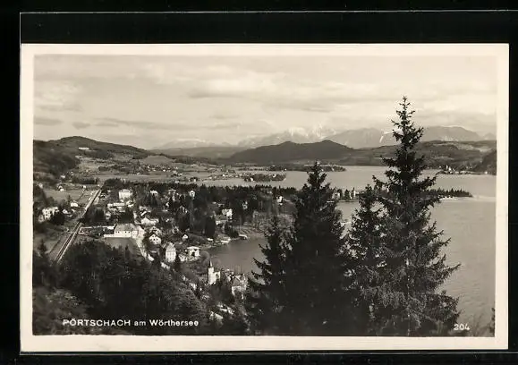 AK Pörtschach am Wörthersee, Ortsansicht mit See aus der Vogelschau