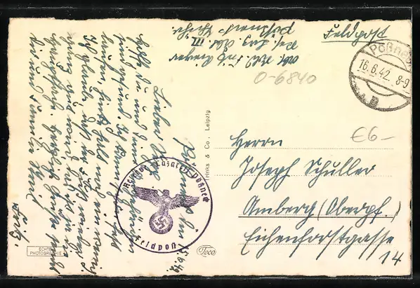 gelaufen 1942, Eckknick rechts oben, guter Zustand