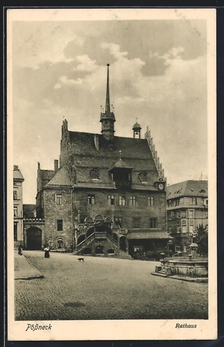 AK Pössneck, Rathaus und Brunnen
