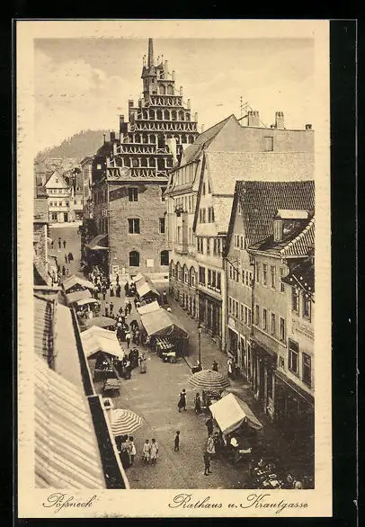 AK Pössneck, Rathaus und Krautgasse