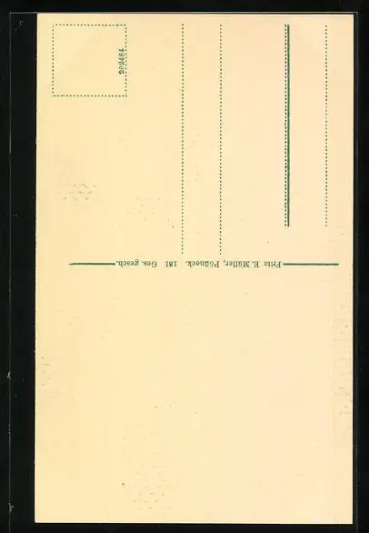 Personenbezogene Daten auf der Rückseite der Karte wurden durch blauen Textmarker unkenntlich gemacht. Die blauen Stellen sind auf die Vorderseite durchgeweicht und wirken sich negativ auf das Postkartenfoto aus