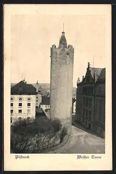 AK Pössneck, Strassenpartie am Weissen Turm
