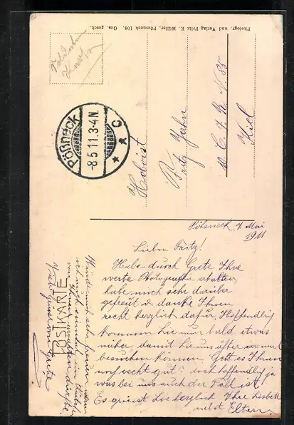 alte Ansichtskarte, gelaufen als Soldatenkarte 1911, Eckknick oben links, guter Zustand