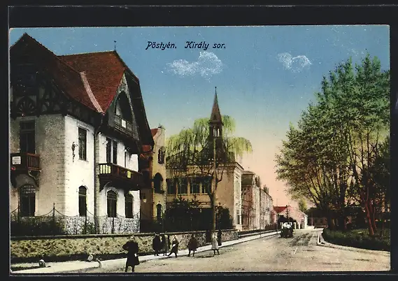 AK Pöstyén, Király sor, Strassenpartie im Ort