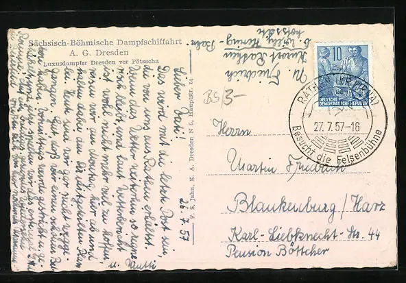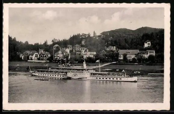 AK Pötzscha, Luxusdampfer Dresden vor dem Ort