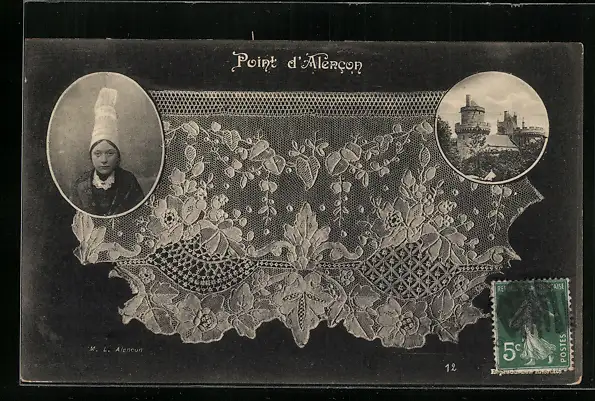 AK Point d`Alencon, geklöppelte Spitze, Frau in Tracht