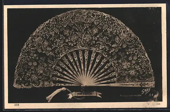 AK Point d`Alencon, geklöppelter Handfächer