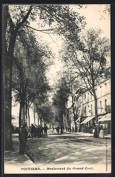AK Poitiers, Boulevard du Grand Cerf avec piétons et arbres alignés