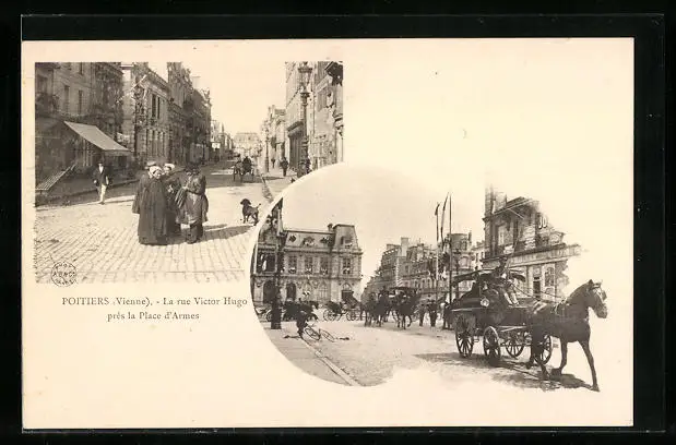 AK Poitiers, La rue Victor Hugo près la Place d`Armes
