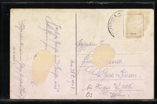 alte Ansichtskarte, gelaufen 1918, Briefmarke entfernt, rückseitig Oberflächenschaden, guter Zustand
