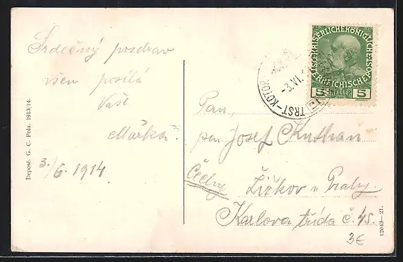 alte Ansichtskarte, gelaufen 1914, guter Zustand