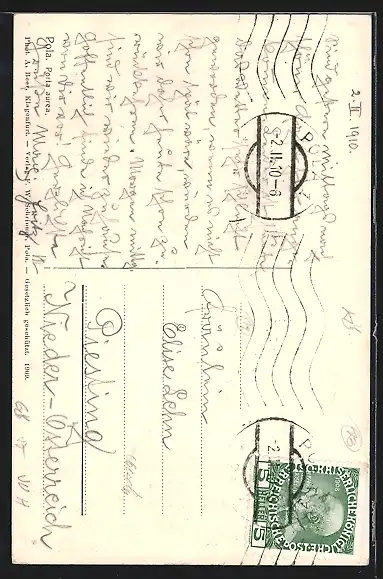 gelaufen 1910, Stempelspur, guter Zustand