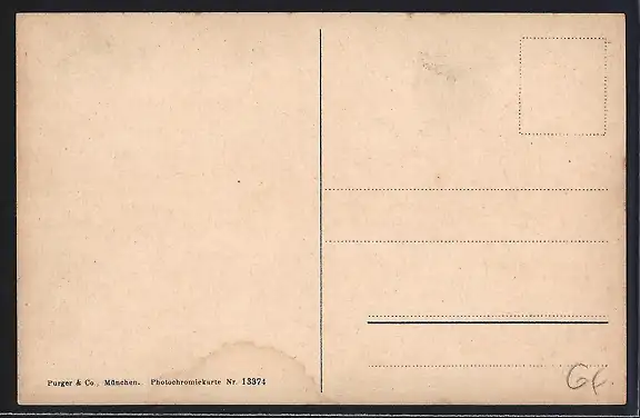 Personenbezogene Daten auf der Rückseite der Karte wurden durch blauen Textmarker unkenntlich gemacht. Die blauen Stellen sind auf die Vorderseite durchgeweicht und wirken sich negativ auf das Postkartenfoto aus