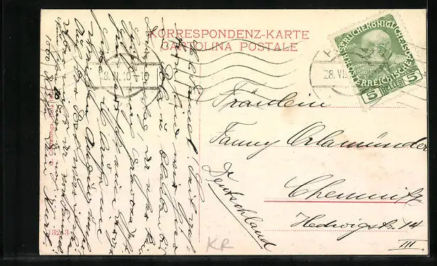 alte Ansichtskarte, gelaufen 1910, Eckknick re. unten, guter Zustand