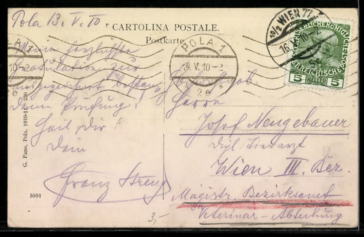 gelaufen 1910, Eckknicke li. oben u. re. unten, guter Zustand