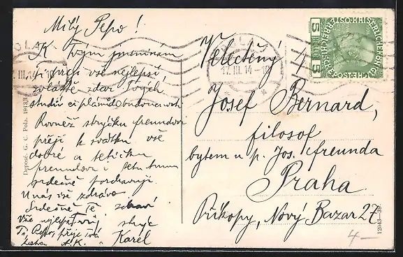 alte Ansichtskarte, gelaufen 1914, Stempelspur, guter Zustand