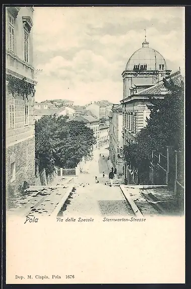 AK Pola, Via della Specola, Sternwartenstrasse mit Passanten