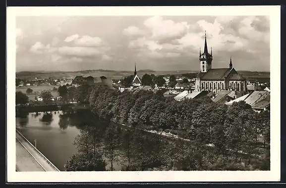 AK Policka, Ortsansicht mit Flusspartie