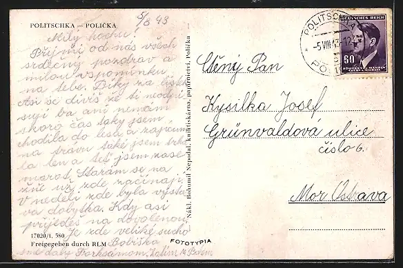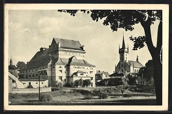 AK Policka, Teilansicht mit Kirche