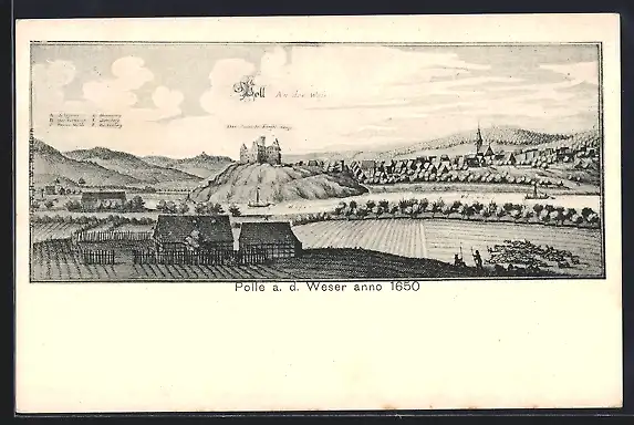 AK Polle a. d. Weser, Ortsansicht anno 1650