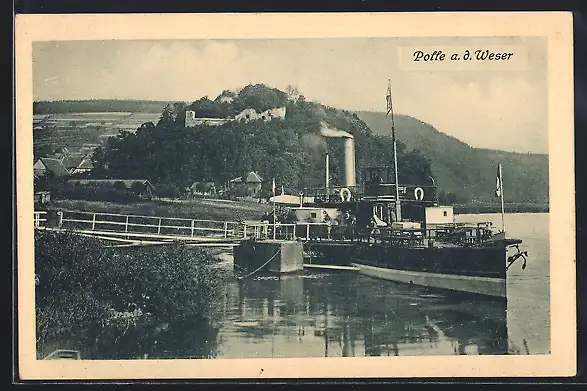 AK Polle a. d. Weser, Uferpartie mit Dampfer