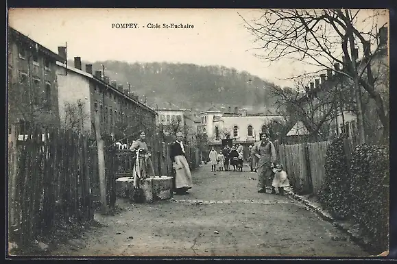 AK Pompey, Cité St-Enchaire avec habitants dans la rue