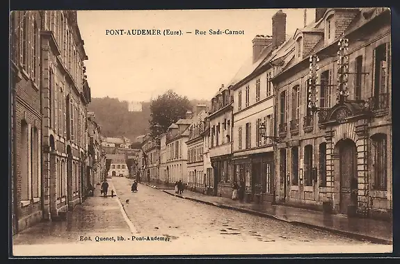 AK Pont-Audemer, Rue Sadi-Carnot avec bâtiments historiques