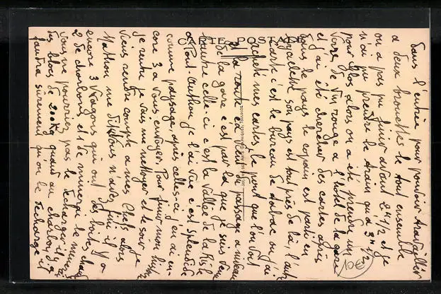 Personenbezogene Daten auf der Rückseite der Karte wurden durch blauen Textmarker unkenntlich gemacht. Die blauen Stellen sind auf die Vorderseite durchgeweicht und wirken sich negativ auf das Postkartenfoto aus