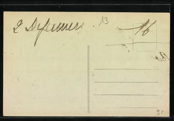 Personenbezogene Daten auf der Rückseite der Karte wurden durch blauen Textmarker unkenntlich gemacht. Die blauen Stellen sind auf die Vorderseite durchgeweicht und wirken sich negativ auf das Postkartenfoto aus