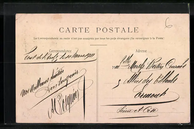Personenbezogene Daten auf der Rückseite der Karte wurden durch blauen Textmarker unkenntlich gemacht. Die blauen Stellen sind auf die Vorderseite durchgeweicht und wirken sich negativ auf das Postkartenfoto aus
