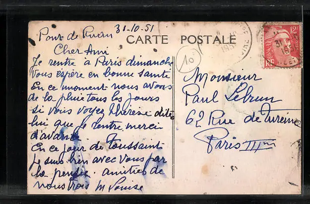 gelaufen 1951, Einriss oben mittig, guter Zustand