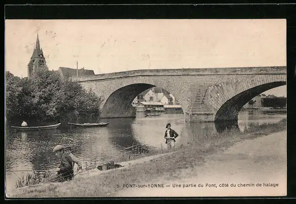 AK Pont-sur-Yonne, Une partie du Pont, cote du chemin de halage