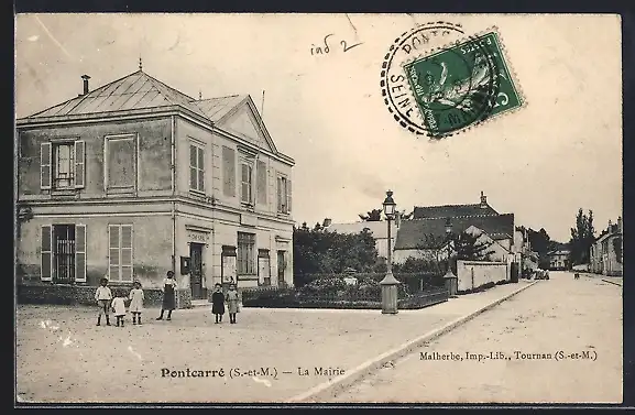 AK Pontcarré, La Mairie avec enfants devant l`édifice