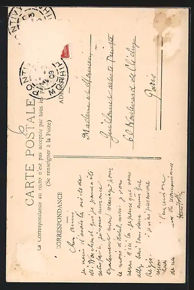 alte Ansichtskarte, gelaufen 1909, Briefmarke entfernt, rückseitig Oberflächenschaden, guter Zustand