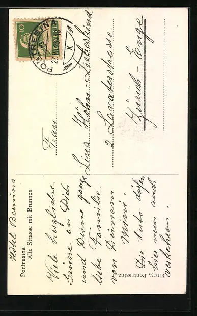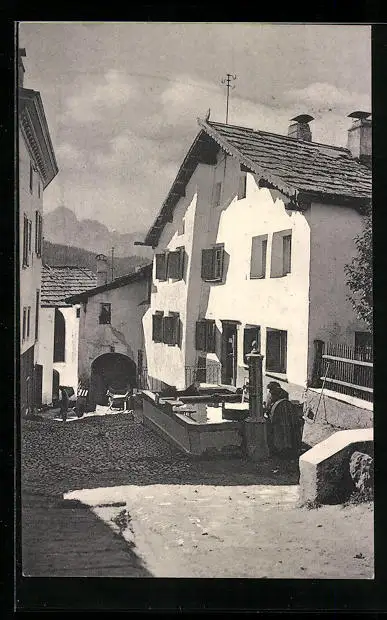 AK Pontresina, Alte Strasse mit Brunnen