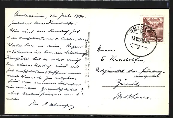 AK Pontresina, Ortsansicht aus der Vogelschau