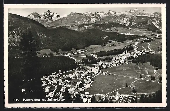 AK Pontresina, Ortsansicht gegen Julierkette