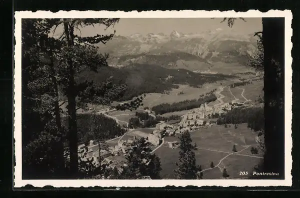 AK Pontresina, Totalansicht mit Alpen