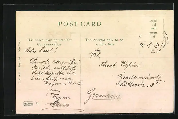 alte Ansichtskarte, gelaufen, Briefmarke entfernt, rückseitig Oberflächenschaden, guter Zustand