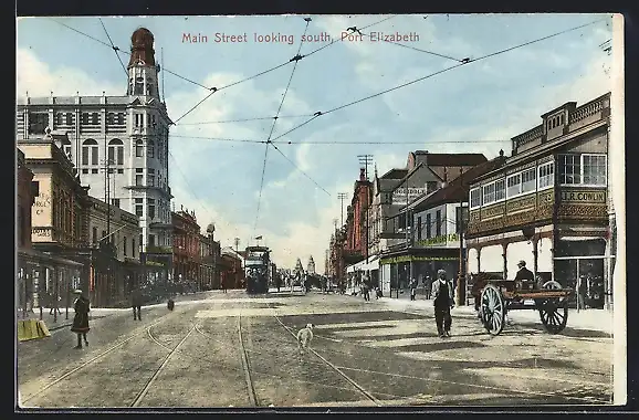 AK Port Elizabeth, Main Street looking south, Strassenbahn