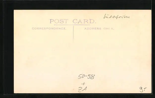 Personenbezogene Daten auf der Rückseite der Karte wurden durch blauen Textmarker unkenntlich gemacht. Die blauen Stellen sind auf die Vorderseite durchgeweicht und wirken sich negativ auf das Postkartenfoto aus
