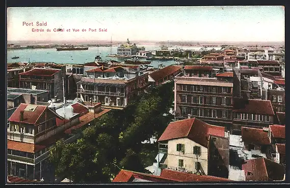 AK Port Said, Entrée du canal et vue de Port Said, Dampfer