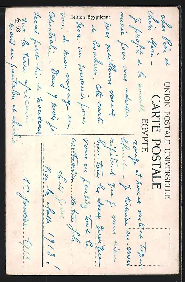 Personenbezogene Daten auf der Rückseite der Karte wurden durch blauen Textmarker unkenntlich gemacht. Die blauen Stellen sind auf die Vorderseite durchgeweicht und wirken sich negativ auf das Postkartenfoto aus
