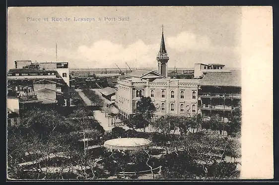 AK Port-Said, Place et Rue de Lesseps
