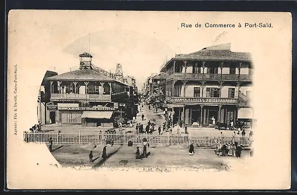 AK Port-Said, Rue de Commerce, Strassenpartie